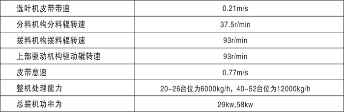 選葉機介紹 ◆選葉機由分料機構(gòu)、連接段、撥料機構(gòu)、布料機構(gòu)、選葉皮帶等組成。 ◆選葉皮帶沿分料機構(gòu)對稱分布,來料經(jīng)過分料機構(gòu)被均分為二,由連接段皮帶輸送至各撥料機構(gòu)適當(dāng)?shù)卣{(diào)節(jié)撥料機構(gòu),可使來料被均勻地輸送到各選葉皮帶機。